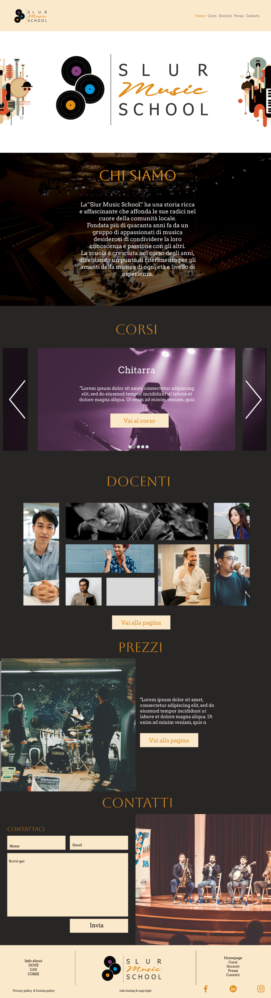 “Slur Music School” is a trial work assigned by the Nemo Academy for the study of web design: logo creation, brand identity, graphic design and website of a fictional music academy.