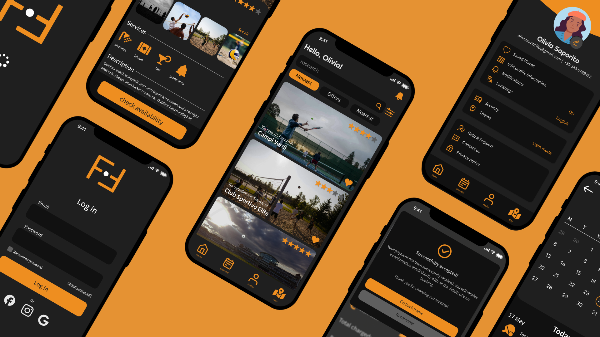 “Field Finder” is a group work assigned by the Nemo academy. The task was to collaborate to create logos, graphics and prototyping of an imaginary app for booking sports fields.