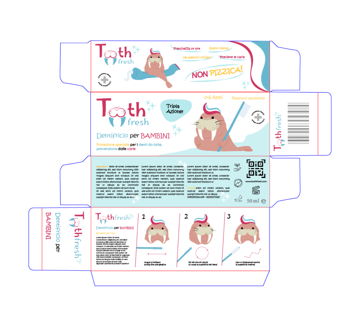 “Toothfresh” is a test work assigned by Nemo Academy. The task was to create the logo, brand identity, mascotte and packaging of a non-commercial product.